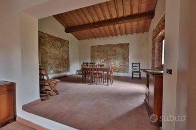 Rif:R05037CARU (109081175) - Un antico rustico toscano con un mulino: non potrebbe essere più banale. Ma che importa se si tratta di un rustico ristrutturato con gusto, che si trova anche in una posizione assolutamente appartata e offre quindi un'infinità di privacy che tutti cerchiamo. Il rustico è stato costruito nel XVI secolo e colpisce subito per la sua particolare architettura. La torre, in particolare, conferisce alla residenza un'aria maestosa e la distingue da tutti gli altri edifici della zona. Tuttavia, non è solo la costruzione di questa proprietà ad essere molto speciale, ma anche il fatto che è composta da stanze aperte e luminose che creano immediatamente la sensazione di tornare a casa quando si entra all'interno dell'edificio. Il terreno di circa 2 ettari è costeggiato da 120 ulivi e contiene anche un vecchio mulino indipendente, anch'esso convertito in abitazione. Grazie alle sue dimensioni e alla presenza di 3 appartamenti indipendenti con un totale di 7 camere da letto, la proprietà è ideale anche per gli acquirenti che desiderano vivere in uno degli appartamenti e affittare gli altri due ai turisti. Questa proprietà offre diverse possibilità: ora sta a voi sfruttarle al meglio! - Classe: G - IPE: 175.00 kWh/mq anno