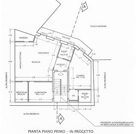 Al secondo piano alloggio composto da ingresso, soggiorno di 43mq con cucina a vista e con sfogo esterno tramite tre meravigliosi abbaini, due camere da letto e doppi servizi .