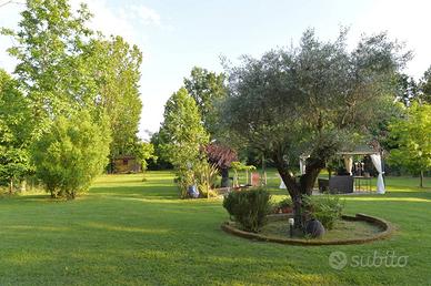Inoltre nel giardino di circa 3000 mq, ben alberato, è stato ricavato un ricovero coperto per 4 auto e una casetta per gli attrezzi.