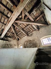 Piastrelle antiche da recuperare, scala in legno, spettacolare soffitto con travi da sabbiare e conservare.