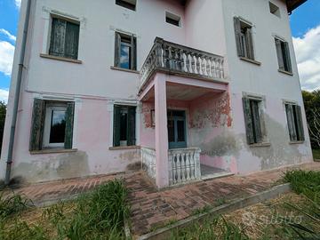 Rustico in stile liberty completamente da ristrutturare a Villanova Di Pordenone, in zona tranquilla con ampi spazi esterni, immersa nel verde. L'immobile principale si sviluppa su tre piani: al piano terra troviamo il soggiorno, la cucina, un servizio; al piano primo due grandi camere e un bagno; al piano secondo un ampio sottotetto uso mansarda. Adiacente ad esso troviamo un fabbricato C/6 di circa mq.120 uso accessori (cantina, taverna, garage). A completare la proprietà ampio giardino ci circa mq. 800 con eventuale possibilità di ulteriori mq. 3000 circa di terreno agricolo. Classe energetica in fase di definizione.
