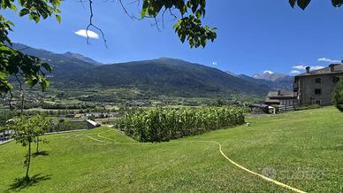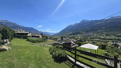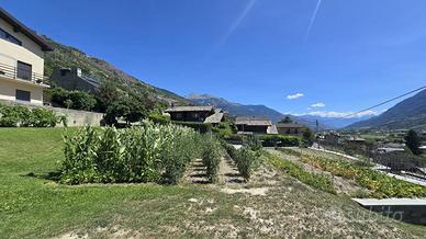 In posizione panoramica e soleggiata, con una splendida vista aperta sulla vallata e sulle montagne circostanti, proponiamo in vendita a Sarre, ampio terreno edificabile di circa 1200 mq con possibilità di realizzare una abitazione di 198 mq. La parte di interrato di 377 mq è già stato accatastato e comprende zona posti auto di 163 mq con 4 metri di altezza ideale per furgoni e rimessaggio camper, cantina a volta in pietra a vista, taverna con cucina e servizio e zona pranzo con forno a legna. Locale ad uso servizio per la realizzazione delle scale di collegamento con la parte fuori terra ed eventuale spazio per l' ascensore interno. Tutte le utenze sono già presenti, allacciate e predisposte per la costruzione futura.