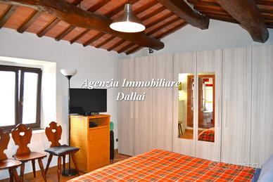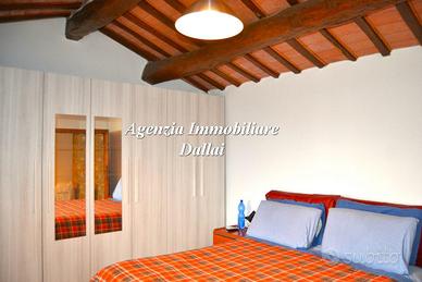 Scarperia (Ponzalla) - In collina, immersa nel verde del Mugello, caratteristica porzione di colonica di testa con giardino (300 mq), posti auto e terreno (600 mq). La Proprietà si sviluppa su 3 piani fuori terra: ingresso indipendente, soggiorno, cucinotto, zona pranzo e stufa a legna; l'antica scala in pietra serena ci porta al piano primo, composto da camera matrimoniale e servizio finestrato, infine al piano secondo troviamo camera matrimoniale e servizio. La Proprietà è stata oggetto di ristrutturazione nel 2018, il tetto è stato coibentato con isolante alto 5 cm ed impermeabilizzato con doppio strato di guaina, sono state coibentati gli interni delle pareti. Riscaldamento con stufa a legna. C'è l'utenza del metano ed è usata per il piano cottura e per l'acqua calda. Porta blindata, inferriate alle finestre del piano terra. Tra la casa ed il giardino c'è un passo pedonale per le porzioni contigue di circa un metro. Il giardino e l'area parcheggio sono pianeggianti; per accedere al terreno c'è una scala. Strada ottima, solo pochi centinaia di metri di strada bianca in piano. Per motivi di privacy gli indirizzi degli immobili sono approssimativi. Maggiori informazioni e foto sul nostro sito internet Agenzia Immobiliare Dallai Franco di Scarperia (FI). Valutiamo i vostri immobili per la vendita e per la locazione. Ufficio e-mail franco@immobiliaredallai.com. I nostri orari: lun/gio: 9-15; mar/mer/ven: 12:30-18:30. Negli altri orari ed il sabato mattina riceviamo su appuntamento. Chiusi la domenica.