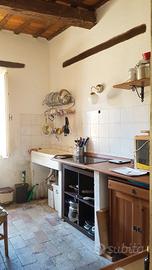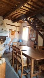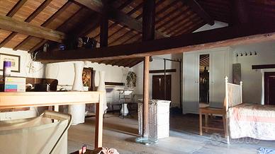 Casa indipendente di tipo rustico (datazione presunta circa fine 1600) in mattoncini tradizionali e pietra posta in Località Serralta a San Severino Marche (MC) sulla SP 502 che collega San Severino a Cingoli. Sviluppata su due piani oltre alla grande taverna e cantina/lavanderia poste a piano terra. È composta da 4 ampi locali con 2 bagni: al primo piano salone con grande camino, cucina abitabile, stanza/studio e bagno; la scala interna in legno conduce al secondo piano (sottotetto con travi a vista) con vasto openspace che ospita un'area biblioteca/studio e una notte con bagno. Metratura complessiva di circa 240 mq commerciali. Corte privata antistante la casa di 90 mq circa e adiacente box auto in muratura con posto supplementare. Completamente ristrutturata di recente conserva l'architettura e lo stile originali. Riscaldamento autonomo (termoconvettori e stufa a pellet bipiano). In ottimo stato è completamente arredata con semplicità e funzionalità. Classe energetica (Legge 90 del 2013, legislazione vigente): G (175 kWh/m² anno). Connessione Internet veloce (FWA o FTTC).