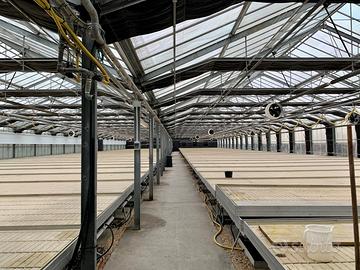 Serra ferrovetro, di mq 3. 060 con annessa Avanserra di mq 250 e fabbricato per servizi coperta in vetro Hortiplus temperato, con: