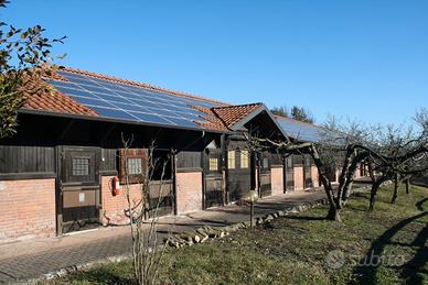 Spostandoci nella zona più interessante quella dedicata ai nostri amati cavalli, troviamo due blocchi di scuderie distinte ccon frontali della rinco e strutture in muratura, tutte con tetto con pannelli fotovoltaici, i box in totale sono 35 ,completano la parte ippica ampi paddock in piano e tettoie e fienili per un totale di circa 700mq.