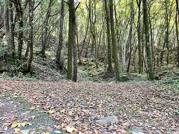 Ampio spiazzo ben battuto a piano strada. Molte essenze presenti. Bellissime rocce laviche affioranti. Presente, ben segnalata, sentieristica per per passeggiate. Insieme a questo bosco verra' ceduto anche un piccolo pezzo di seminativo, un po' piu' avanti, di 400mq