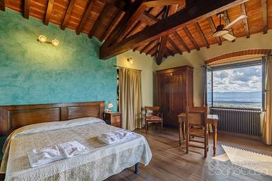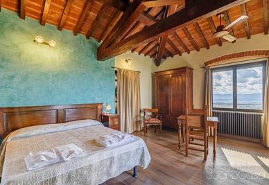Rif:2202 (120355032) - REGGELLO / PIETRAPIANA, in posizione collinare Vi proponiamo questa splendida dimora in pietra risalente al XIV secolo. Situata a circa 470 metri di altitudine e con una splendida vista sulla vallata del VALDARNO l'antico CASALE è stato sapientemente e totalmente RISTRUTTURATO nel 2011. Si estende su più livelli per una superficie di circa 430 mq di coperto oltre a terreni per circa 1750 mq. Attualmente ospita una struttura ricettiva di B&B con RISTORANTE ma può essere facilmente convertita anche in più abitazioni per nuclei famigliari amanti della natura e della tranquillità. Dall'ingresso principale si accede alla bellissima terrazza di circa 250 mq ed alla zona parcheggio. Il piano terra è attualmente composto da 7 ampi vani con zona ristorazione oltre ad un piccolo appartamento del custode. Al piano primo si sviluppa la zona accoglienza con 6 camere indipendenti munite di propri bagni. Al piano seminterrato troviamo invece la zona relax con area fitness, sauna e vasca idromassaggio. La ristrutturazione è stata oggetto di un attento recupero dei materiali storici combinato alle moderne tecnologie che ha portato alla posa di pannelli solari e fotovoltaici in copertura oltre ad un recupero delle acque piovane a servizio dell'irrigazione dei campi ed al tetto ventilato per il massimo benessere e la massima efficienza energetica. Le facciate in pietra sono state impermeabilizzate con resina. La proprietà dispone poi di un BIO-PISCINA con sistema di fito-depurazione naturale. La bellezza della vista e la tranquillità dei luoghi ne fanno una perfetta dimora per essere adibita a grande dimora privata o proseguendo l'attività ricettiva con accoglienza. Per appuntamenti e informazioni contatta Carlo Fischi Tel. (anche whatsapp) Agenzia Immobiliare SOGNOCASA - Via G. Marconi 15r - 50131 Firenze - T. info@sognoca - Classe: G - IPE: 280.00 kWh/mq anno