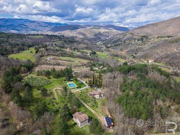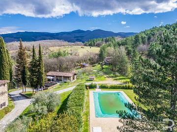 Rif:R06254CHAG (119442231) - Se avete sempre sognato di ritirarvi a fine giornata nella tranquillità e nella meravigliosa atmosfera di un rustico toscano, allora questa proprietà è esattamente ciò che state cercando. Il rustico è stato costruito nel 1800 e ampiamente ristrutturato nel 2005 con grande sensibilità e rispetto per la sua sostanza storica. Tuttavia, non si tratta di una sola casa in vendita, ma di un piccolo borgo composto da tre edifici. La casa principale risplende di fascino rustico, con arredi moderni e sottolinea questo ambiente storico. Inoltre, c'è un secondo edificio che non solo offre uno spazio abitativo confortevole, ma anche una spaziosa sala per i pasti e una varietà di attività. Questo offre numerose opportunità per incontri sociali e occasioni di festa. In questo edificio c'è anche un appartamento aggiuntivo che offre spazio per gli ospiti o forse anche per un inquilino. Il terzo edificio è un'affascinante casa colonica divisa in due appartamenti separati, una soluzione ideale per famiglie numerose o per affitti turistici. Tutti gli edifici sono in ottime condizioni e alcuni sono anche già arredati con mobili di gusto, rendendoli immediatamente abitabili. Anche dal punto di vista tecnico la proprietà è all'avanguardia, grazie a un impianto fotovoltaico che assicura un approvvigionamento energetico ecologico. Inoltre, la proprietà offre molto spazio per le opzioni di progettazione individuale su ben 15 ettari di terreno e garantisce un elevato livello di sicurezza e privacy grazie alla recinzione completa. Ma non è tutto! Come punto di forza speciale, la proprietà offre una piscina splendidamente situata. Qui potrete rilassarvi nei caldi mesi estivi e godervi la vista sulla campagna circostante. La posizione della proprietà è quasi paradisiaca. Si trova nelle immediate vicinanze del pittoresco Parco delle Foreste Casentinesi, un'area - Classe: G - IPE: 175.00 kWh/mq anno