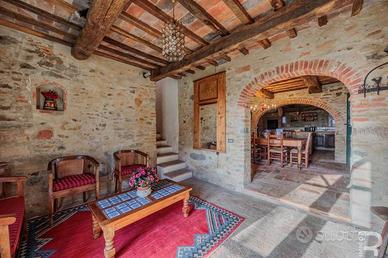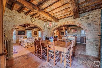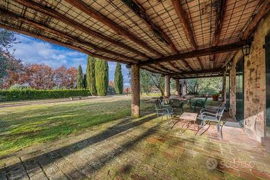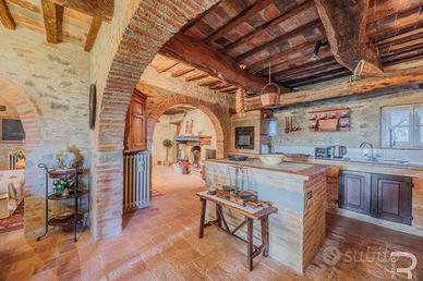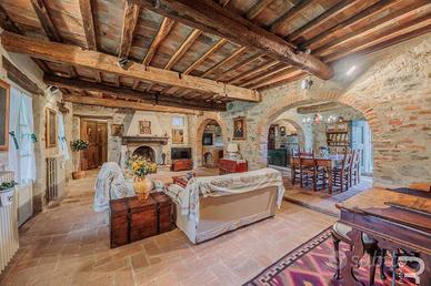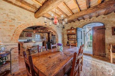 Rif:R06889CORU (125698199) - Questo straordinario rustico è un vero e proprio oggetto da collezione, immerso in un parco ben curato di circa 4.000 m² con alberi secolari e una grande piscina di 12 × 6 metri. L'immobile unisce il fascino storico all'eleganza senza tempo e affascina per la sua storia particolare: nel 1987 la proprietà è stata completamente ristrutturata con grande cura dall'ex proprietario, l'attore hollywoodiano Malcolm McDowell (noto per "Arancia meccanica"). La ristrutturazione è stata volutamente realizzata in uno stile conservativo e classico, privilegiando materiali di alta qualità ed elementi tradizionali. Ciò ha permesso di preservare il carattere autentico del rustico e allo stesso tempo di creare un elevato livello di comfort abitativo. Oggi la casa si presenta in condizioni eccellenti e non necessita di lavori di ristrutturazione. Il cuore della casa è costituito dall'ampia zona giorno con un imponente camino che crea un'atmosfera calda e accogliente. Adiacente si trova la grande cucina con isola centrale, ideale per serate conviviali e delizie culinarie. Una splendida veranda amplia lo spazio abitativo verso l'esterno e invita a godersi la vista sul parco o a trascorrere ore di relax all'aria aperta. L'immobile dispone di tre confortevoli camere da letto, ciascuna con bagno privato, che offrono privacy e funzionalità di alto livello. Una particolarità architettonica è la torre, che conferisce alla proprietà ulteriore carattere e unicità. All'esterno, un forno a legna tradizionale per pane e pizza e la piscina completano l'offerta e rendono la proprietà perfetta per momenti conviviali e rilassanti giornate estive. L'approvvigionamento idrico è autonomo grazie a un pozzo artesiano profondo circa 120 metri, poiché non esiste un allacciamento alla rete idrica pubblica. La casa è riscaldata da una combinazione di gas liquido e una pompa d - Classe: G - IPE: 175.00 kWh/mq anno