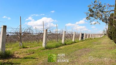La componente agricola è solida e produttiva. 8,5 ettari sono coltivati a kiwi, con 5 ettari di Hayward in piena produzione da oltre 20 anni e 3,5 ettari di Boerica, impianti recenti di circa 5 anni, già predisposti per la copertura. I restanti terreni seminativi offrono ulteriore spazio per espansione agricola, diversificazione colturale o nuovi progetti produttivi.