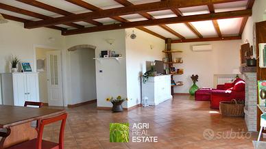 Il vero punto di forza della tenuta è il fabbricato principale, una villetta indipendente di 120 mq, oggi attività di Bed & Breakfast agricolo già avviata. La casa è in ottime condizioni, pronta all'uso, e offre spazi curati e funzionali: un ampio salone con camino dedicato all'accoglienza, due camere da letto, due bagni, una cucina attrezzata e un giardino privato con tettoia, da cui si gode una splendida vista aperta sui colli romani. Una residenza che trasmette immediatamente atmosfera, autenticità e comfort, ideale per sviluppare un progetto di ospitalità agrituristica o esperienziale.