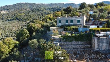 Al termine del vialetto si trova un casale di 240 mq su due livelli, utilizzabile sia come residenza privata che come struttura ricettiva agrituristica. La proprietà è inoltre dotata di ampi spazi esterni, comprensivi di un bosco e di un orto coltivabile. La terrazza panoramica del casale consente una visuale estesa fino alla costa pontina.