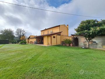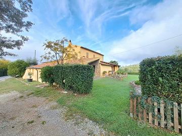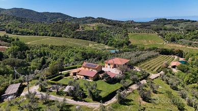 In bella posizione collinare nel prestigioso territorio di Bolgheri, proprietà di 45000 mq di terreno recintato al cui interno troviamo due Casali distinti, uno su due piani composto al piano terra da ampia cucina pranzo con loggiato esterno, salone con camino, studio, al piano superiore 2 camere e bagno, il Casale inoltre ha una appendice dove ci sono alcuni locali ad uso magazzino, l'altra abitazione è invece composta da ampia cucina pranzo con camino, cucinotto, soggiorno, 3 camere e bagno, al piano seminterrato ha un locale ad uso taverna, sul terreno insiste inoltre capannone x attrezzatura, 500 piante di olivo, 1 ha di vigneto Igt, sul tetto dei fabbricati impianto fotovoltaico da 16 kw.