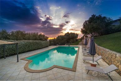 Immersa nelle verdi colline di Ozieri (prov. Di Sassari) circondata da ulivi secolari, piante di oleandro e da un curato prato all'inglese, magnifica Villa con avviato B&B al piano superiore composto da 4 camere matrimoniali con annesso bagno privato e 1 camera con bagno privato accanto alla hall, alla sala colazioni e al salotto.
