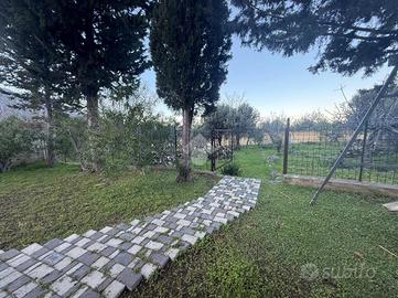 La restante superficie è pianeggiante e ben curata, coltivata con circa dieci alberi di ulivo e diversi alberi da frutto, tra cui mandarini, nespole e fichi. La disposizione degli spazi rende il terreno funzionale e piacevole, ideale per chi desidera coltivare, trascorrere del tempo all'aria aperta o investire in un appezzamento agricolo