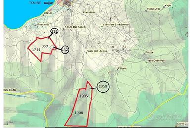 PISOGNE - Fraz. Toline Disponiamo in vendita di ampia superficie boschiva (bosco misto ceduo) posta sopra l'abitato di Toline. La totalità della superficie è di 219.370 mq. La vendita può anche essere frazionata in quanto una parte (66.840 mq) sono posti più in basso rispetto ad altra parte di 152.530 mq posta appunto più in alto.
