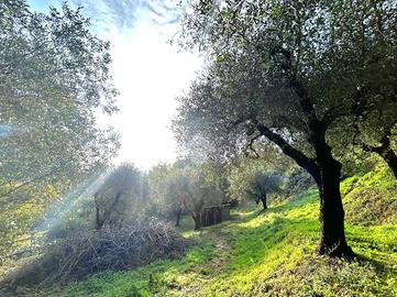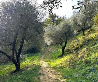 All'ingresso della proprietà troviamo circa 150 piante di noci , salendo ci sono circa 10 piante di alberi da frutto come ad esempio ciliegio, albicocca, prugne, pere e kaki. Nella parte più ripida ci sono circa 100 piante di ulivo, dove vi è una sorgente d'acqua privata (da ripristinare). In questo appezzamento di terra, vi è la possibilità di effettuare l'allaccio alla corrente.