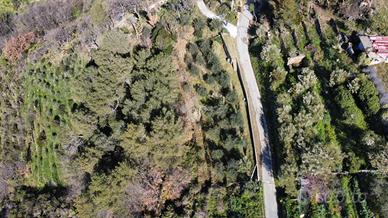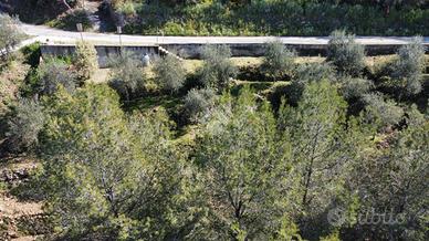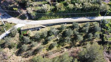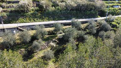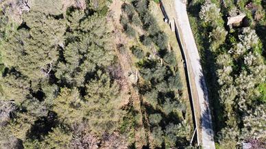 Il terreno, ad uso agricolo, confina con la strada e a, livello di essa, ha un'ampia piazzola dove si può parcheggiare l'auto o un furgone. Tramite una scaletta si scende nel terreno, disposto su fasce e piantumato ad ulivi