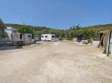 La proprietà dispone di due terreni da 2000 metri ciascuno. Uno destinato a seminativo mentre l'altro è completamente cementato con parte coperto da una tettoia con servizi. Attrezzato come sosta camper recitato e fornito di servizi elettrici con prese ogni 6 metri.