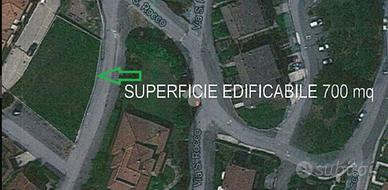 a 20 minuti dalla città, lontano dal caos, in una zona defilata dal traffico e circondata dal verde, terreno edificabile di 700 mq circa con una gradevole vista panoramica sulla vallata.