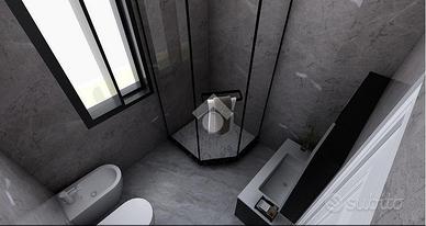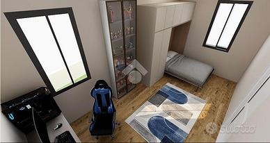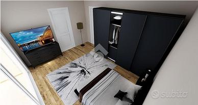 A piano primo 2 camere di oltre 13 mq utili, anti bagno e bagno, camera matrimoniale di 17 mq utili con bagno padronale e 2 balconi.