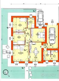 Il lotto di 559mq si presta per la costruzione di una villetta come nell'esempio di progetto presente in annuncio che prevede un unità immobiliare tutta su un piano con giardino su tre lati della casa composta da una zona giorno comprensiva di soggiorno con cuina separata, bagno e lavanderia entrambi finestrati.