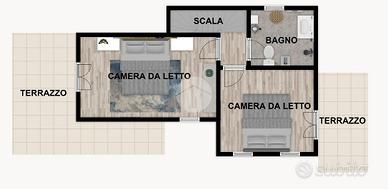 Al piano superiore sono previste due camere da letto con fuoriuscita sui terrazzi e ampio bagno.
