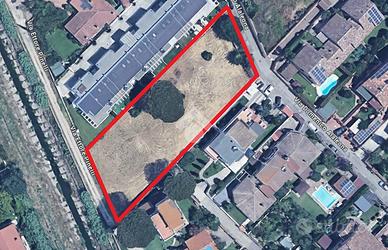 Il lotto di terreno che ha forma quadrangolare con i lati paralleli a due a due e andamento sostanzialmente pianeggiate, è esteso per circa 2.100 mq Il lotto di terreno ha due affacci su strada , Via Domenico Alaleona e Via Ettore Pinelli, entrambe le strade sono dotate di pubblica illuminazione