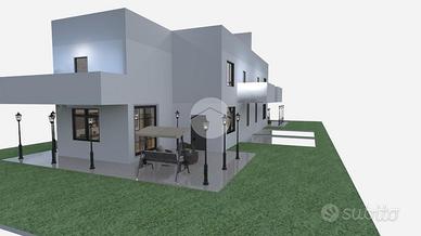 Il primo progetto rappresenta la realizzazione di una bifamiliare, ogni abitazione ha ingresso indipendente, con piano seminterrato destinato al parcheggio di auto e/o moto, al piano rialzato abbiamo una spaziosa zona giorno con patio esterno e al primo piano la zona notte, composta da tre camere e doppio servizio.