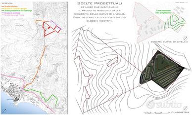 Su tale terreno è stata sviluppata una progettazione per la realizzazione di una struttura turistico-ricettivo, che mira a lasciare invariato il paesaggio naturale attraverso la realizzazione di complesso con strutture ipogee - underground che ben si fondono con la morfologia del territorio.