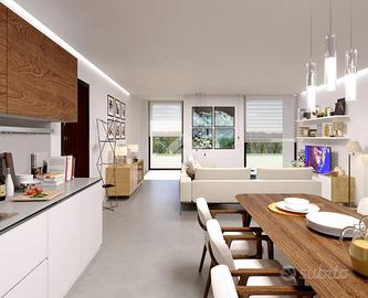 Come pertinenze annesse alla proprietà ci sarà una serra solare di 15 metri quadrati circa e un lotto di giardino esclusivo di 1000 metri quadrati.