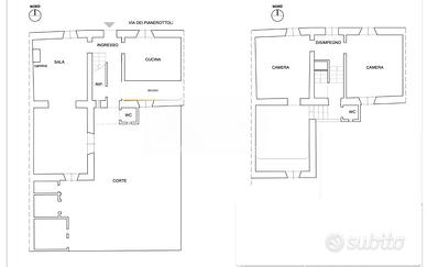 al piano terra una grande zona open space con camino, cucina semi-abitabile con zona cottura in muratura, comodo ripostiglio o dispensa, un bagno grande e un piccolo secondo bagnetto.
