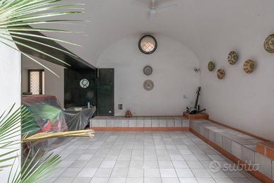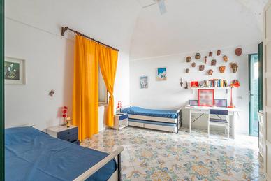 Rif: CBI118-1960-301770 A poca distanza dal mare, nella pittoresca zona di Seiano proponiamo in vendita un magnifico palazzetto con annessi 2 garage dal fascino e dalle caratteristiche uniche risalente al XVII secolo. La proprietà che ben si presta ad un divisione è attualmente utilizzata come residenza estiva, ha due ingressi da cui si accede dal viale stradale, dal primo si è immessi al piano terra dove oltre al cortile interno, troviamo 2 locali attualmente utilizzati come deposito ma originariamente aventi una destinazione commerciale, la cantina un piccolo bagno e la zona attualmente utilizzata come soggiorno open space comune a tutte le unità ma ripristinabile come unità immobiliare indipendente collegata attraverso le scale a 2 camere da letto con terrazzino e bagno posti al primo piano. Sempre al piano primo troviamo soggiorno con cucina, ripostiglio, salone doppio con uscita sul balcone e al piano superiore una camera da letto con bagno en suite e meraviglioso terrazzo. Dal secondo ingresso attraverso una comoda scala interna indipendente si ha accesso al bilocale composta da camera, soggiorno-cucina e bagno. Completano la proprietà 2 comodi garage posti a pochi metri dallo stabile. Questo Terratetto è l'ideale per chi cerca una casa spaziosa, elegante e funzionale, in un contesto unico e suggestivo come quello della penisola sorrentina Una vera e propria oasi di pace e bellezza, perfetta per chi desidera vivere lontano dal trambusto della città, ma non troppo distante dai principali servizi e attrazioni della zona.