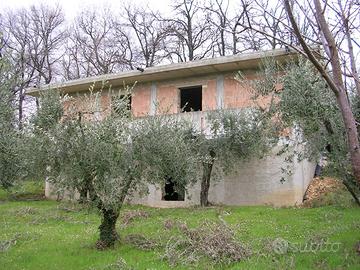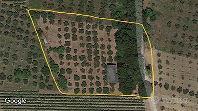 vendesi terreno agricolo di 4500 mq, con annesso magazzino/rimessa agricola (circa 80mq, cat.F3) privo di finiture; la proprietà, comoda e pianeggiante, vanta la presenza di circa 40 piante di ulivo, alberi da frutto e porzione di bosco (querceto).