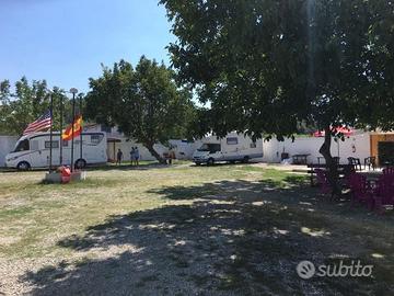 Vendesi terreno di 3000mq attrezzato per area sosta camper ma tranquillamente trasformabile, punti luce e acqua sparsi in tutto il terreno, illuminazione sparsa nel perimetro, piattaforma di lavaggio mezzi in cemento armato e griglia di scarico con 2 pozzi imhoff a norma, antifurto, 2 bagni, 5 docce e lavabi, gazebo in lamellare e tettoia esterna, terreno edificabile.