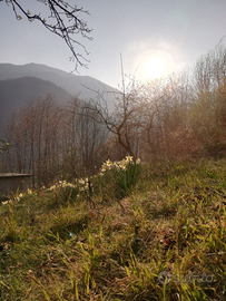 Terreno terrazzato di 550 mq circa, con barbecue in muratura, adatto a passare giornate in tranquillità. Nel terreno sono presenti alberi da frutto (mele, pere, uva, noci e more) e una cisterna di acqua piovana. La casetta e il pergolato nella foto non sono più presenti. NON È PIANEGGIANTE. È possibile l'ingresso solo a piedi, attraverso una scaletta in pietra. Sulla proprietà non ci sono spese da pagare (no luce, no gas, no acqua, no imu). Spese notarili a carico dell'acquirente.