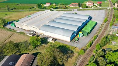 Superfici: Sul terreno sorge un capannone di circa 9.500 mq complessivi, corredato di palazzina uffici e tettoie per il carico e scarico delle merci.
