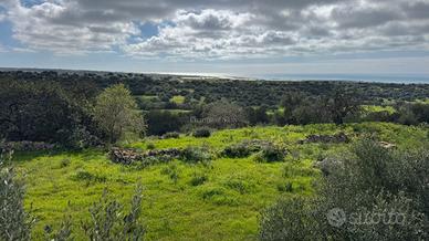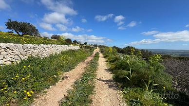 La proprietà si estende su un ampio appezzamento delimitato da tipici muretti a secco, ricco di vegetazione autoctona e alberi sparsi che conferiscono fascino autentico al paesaggio circostante. La conformazione del lotto offre molteplici possibilità per la realizzazione di ville o complessi abitativi dal sapore mediterraneo, garantendo privacy assoluta grazie alla vastità della superficie disponibile.