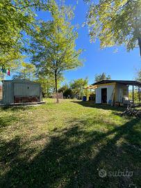 - Roulotte e container (4x2 m) con pergolato coperto e ripostiglio attrezzi adiacente