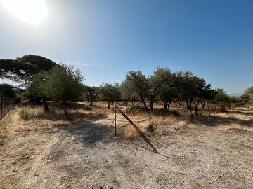 Il lotto ha un'estensione di 35.000 mq, parzialmente pianeggiante, non recintato, in parte coltivato a uliveto con 400 piante adulte, in parte libero.