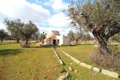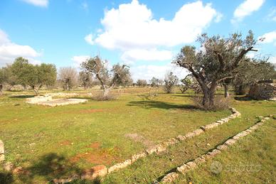 Il terreno è caratterizzato dalla presenza di due piccoli trulli accatastati come unità collabente, che aggiungono un tocco di autenticità e storia al luogo.