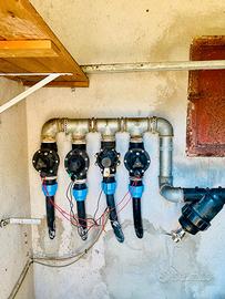 Impianto di irrigazione automatizzato, che consente una distribuzione efficiente e programmata dell'acqua, ottimizzando la crescita di colture e piante.