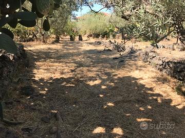 Terreno agricolo, panoramico, libero da vincoli, con piccolo fabbricato rurale (locale deposito 17 mq) catastato. Adibito ad uliveto, con parte pianeggiante e parte lavica con contratto per acqua irrigua.