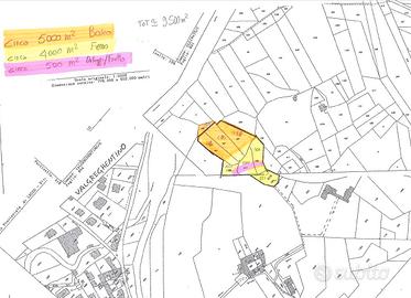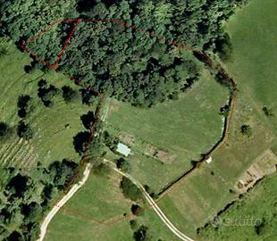 Terreno metà bosco e metà piano dove ci sono moltissime piante da frutta. La grossa maggioranza é recintato con cancello su strada consortile, asfaltata fino a 100 m dall'ingresso, e solo 900 m2 sono al di fuori della recinzione. Tenuto in perfetto stato. Contatore acqua già installato.