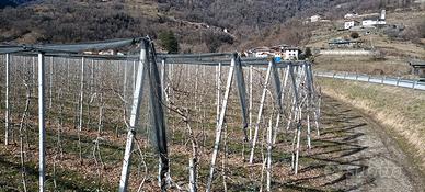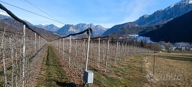 Terreno diviso in due blocchi da 2 e 4,5 ettari. Presente magazzino su due piani (100mq totali) e tettoia accatastata (30mq). Coltivato a frutteto con golden, gala e red. Totalmente coperto da reti antigrandine. Al momento non si valutano proposte di affitto.