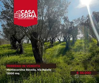 In vendita terreno agricolo di 13.000 mq situato a Montecorvino Rovella, in Via Raiello, facilmente accessibile sia da Macchia di Montecorvino Rovella che da San Vito di Montecorvino Pugliano .
