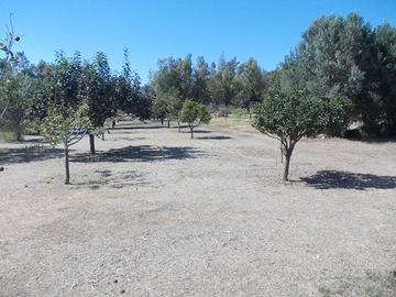 Confinante il centro abitato, 9.300 mq., servito da strada asfaltata. Destinazione: 60 piante oliva bosana, tenuto a prato raso, pozzo da ripristinare; frutteto, eucalyptus, orto con impianto a goccia e pascolo naturale. Limiti di proprietà definiti. Recinzione nuova, pulito ed irrigato, con due stazioni. Presente anche fabbricato di circa 50 mq., ubicato ad angolo sul confine, non ampliabile, munito dei quattro allacci domestici. Eventualmente, da trattare a parte, assieme al cortile attiguo. Prezzo, non definibile in annuncio, solamente in loco, in base al tipo di destinazione scelta (abitazione o deposito). Resto del terreno solo uso agricolo. L'azienda completa, estesa un ettaro, è divisa in settori di coltivazione con stradino centrale. Documenti in ordine e finanziabile. Possibile trattativa per superficie inferiore di SOLO terreno agricolo. Il fabbricato è vendibile SOLO assieme all' intera azienda. Francotino: 347 17 36 346 - Tonino: 347 81 29 145
