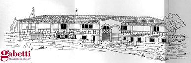 Il progetto era così strutturato: nel corpo centrale al piano terra troviamo la sala, cucina, ampia veranda, uffici e i bagni e al piano seminterrato il deposito attrezzi, laboratorio, cantina vini ecc. Negli altri due corpi sono previste le 6 camere da letto con bagni privati, lo spaccio , lavanderia e i bagni.