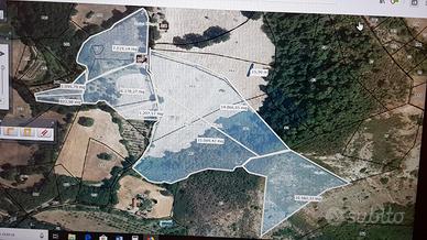Il terreno è di circa 60.000 mq., di cui 2/3 completamente pianeggiante e coltivabile. Nel terreno esiste una vasca di acqua potabile alimentata da un'abbondate sorgente naturale, di esclusiva proprietà, che garantisce l'irrigazione per eventuali orti e giardini.